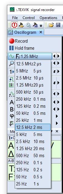 Parametry nahraného signálu lze později změnit. Jediný parametr, který je potřeba nastavit dle charakteru měření před nahráváním, je vzorkovací frekvence. | ![]() | |||||||