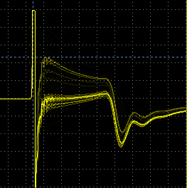 Technologie DPO (Digital Phosphor Oscilloscope) Efekt virtuálního dosvitu umožňují pozorování vzácných jevů a anomálií na pozadí stacionárního signálu. | ||||||||