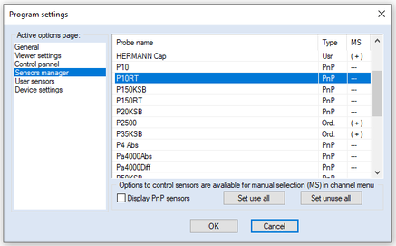 Manažer snímačů Nástroj se používá k výběru externích senzorů pro automatickou identifikaci nebo ruční konfiguraci. | ||||||||