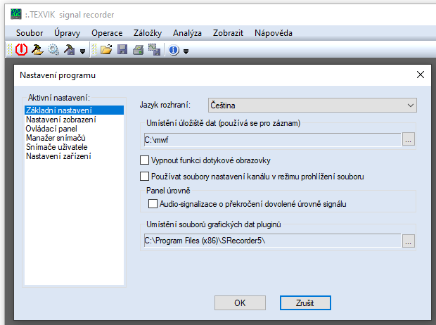 Ověřte Základní nastavení Programu: Menu – Úpravy – Nastavení programu