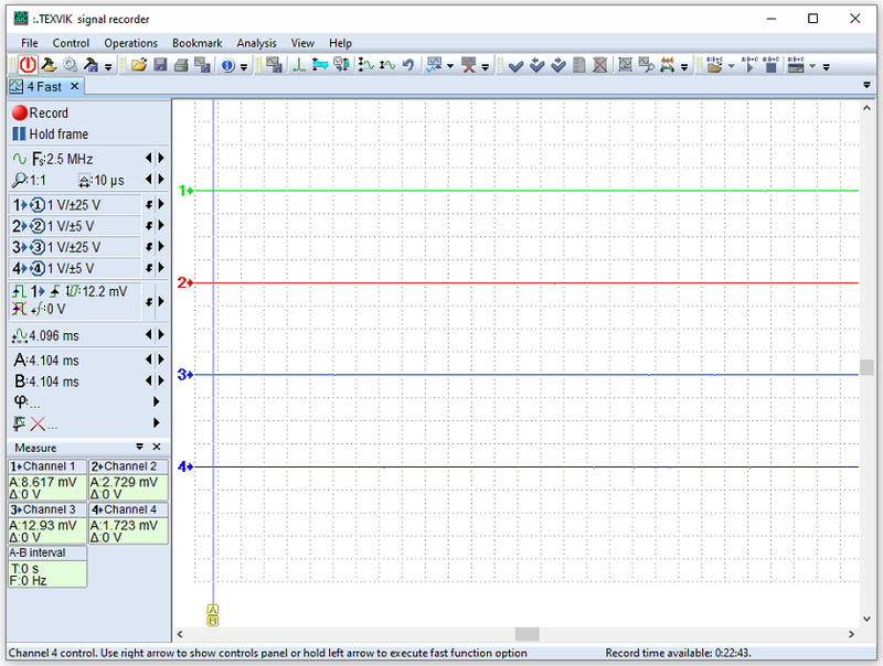 Po dokončení obou testů zvolte počet kanálu a tlačítkem Start zapnete Přístroj v režimu osciloskopu